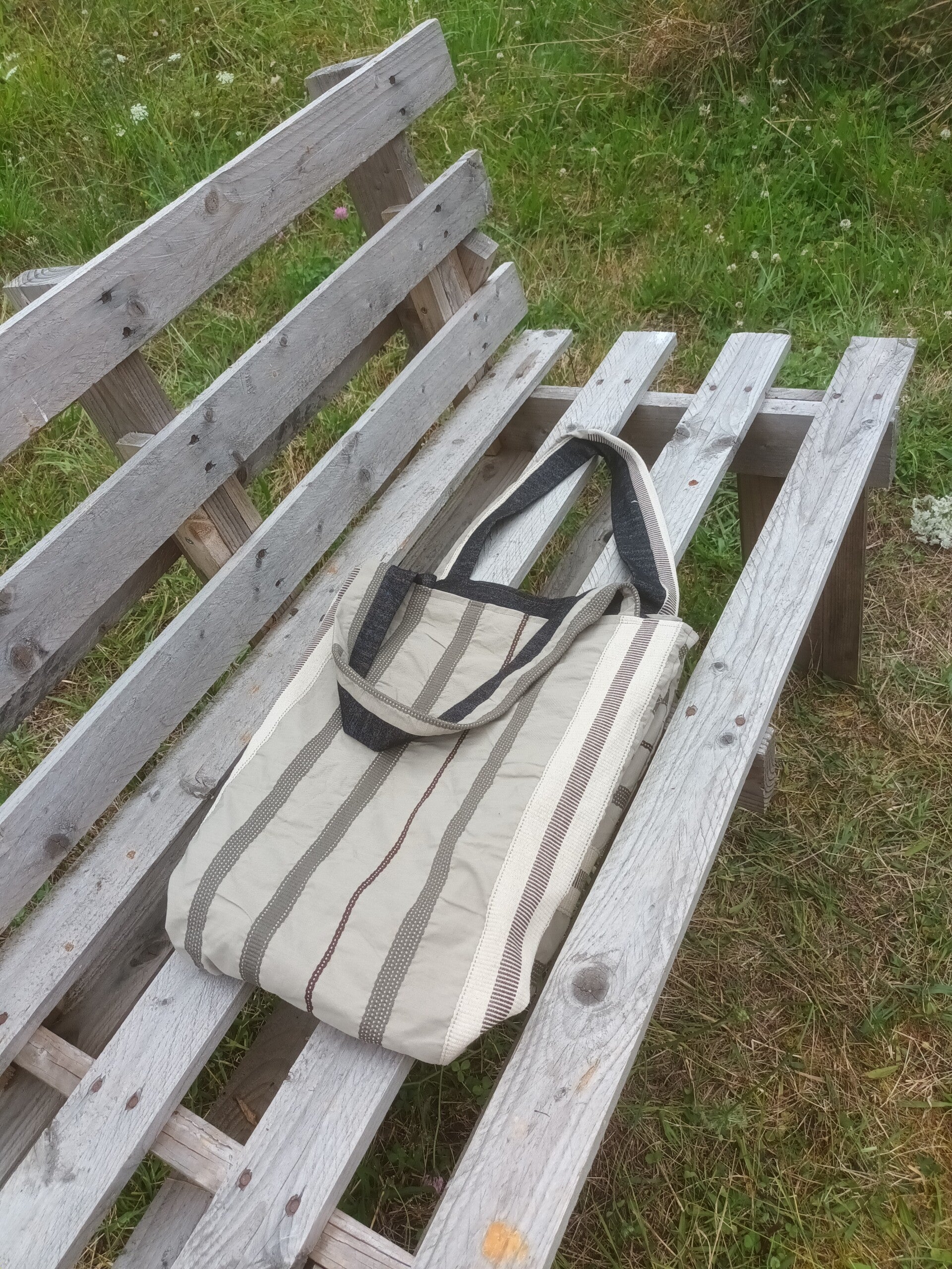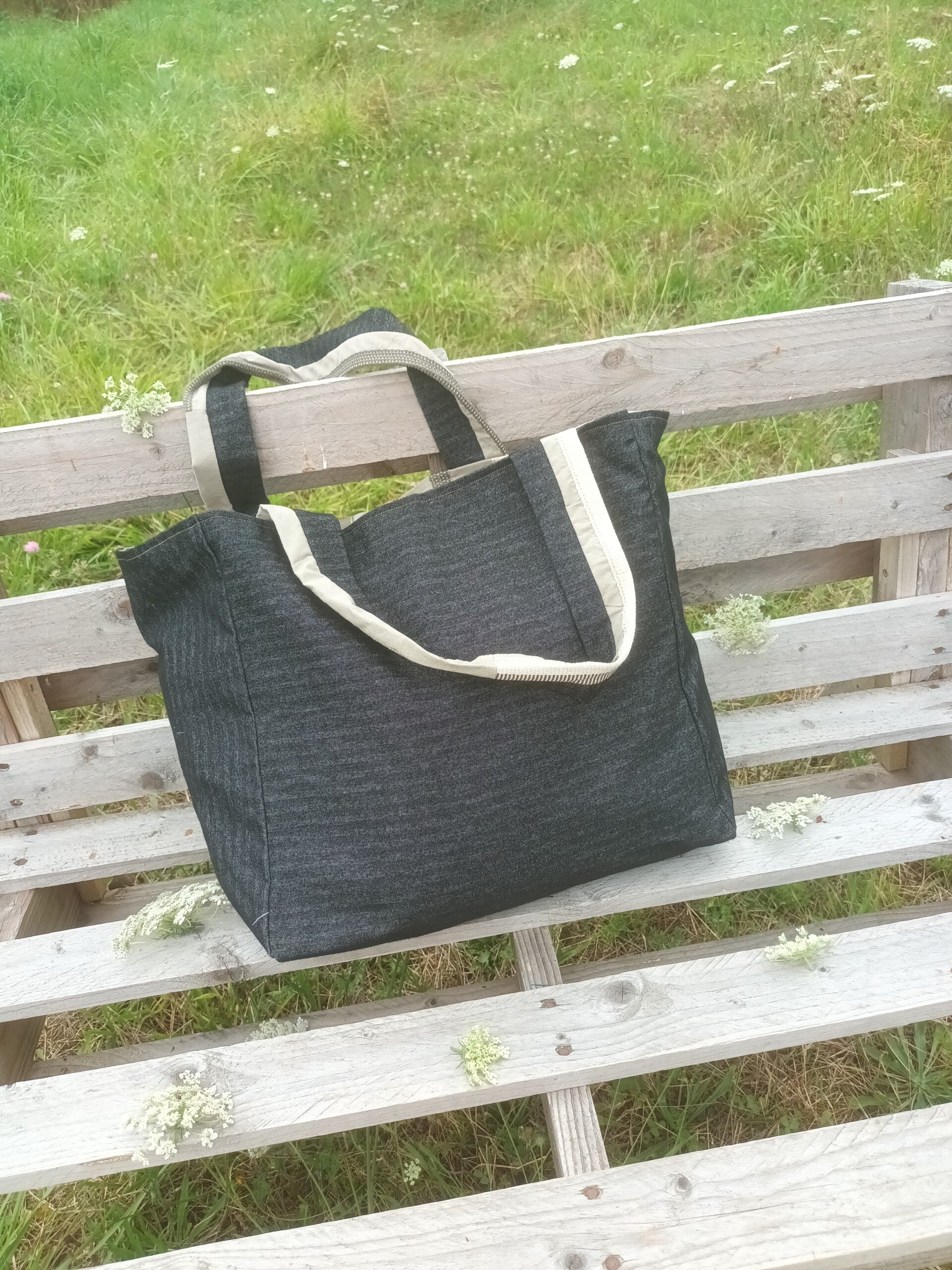 Sac cabas pour accueillir vos courses, vos colis, ou pourquoi pas aller à la plage... bref, le volume que l'on aime avoir sous la main. Et en plus, complètement réversible selon votre humeur.